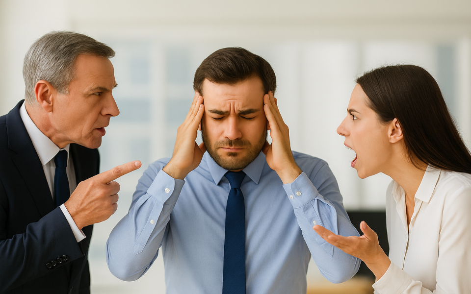 Van az a sajátos érzés, amikor egy értekezletről lefelé menet még a felsővezető mondatai zakatolnak a fejedben, de mire odaérsz az irodádhoz, már ott áll két kolléga, akik egészen más miatt bosszúsak. Fentről elvárások, lentről igények, és te vagy a kettő között.